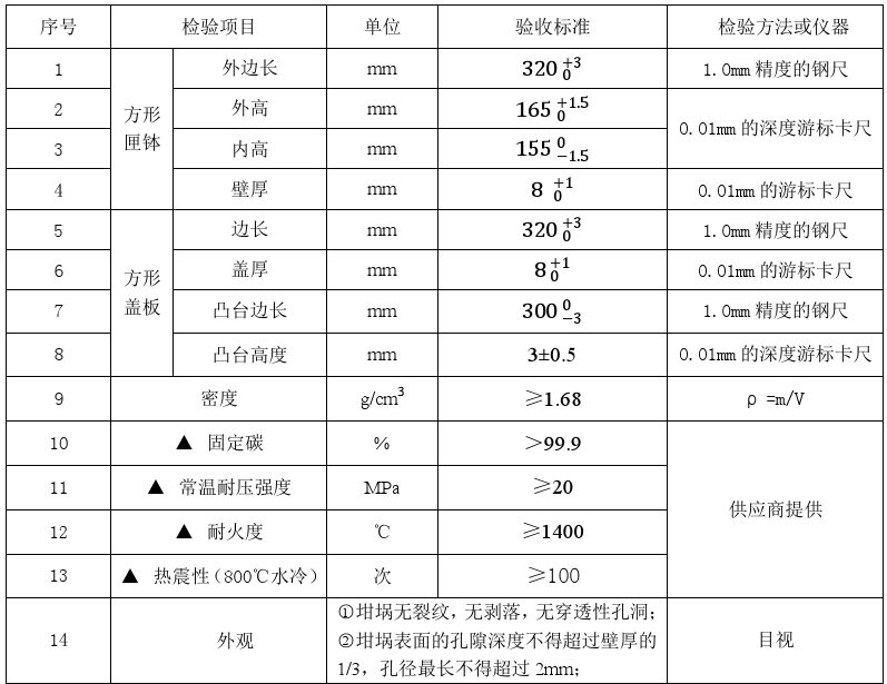 生产高能电池的方形石墨匣钵检验标准
